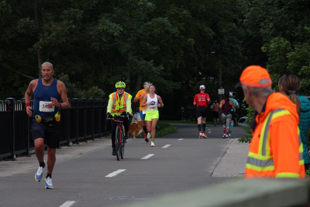 During my run, I noticed that I was passed a lot (although I could not tell if they were running the full or the half). This did not bother me at all. In fact, I was admiring how great they were doing. I just kept thinking about my August training, what I did, and asking myself if I did something wrong. Was it my last marathon run? Did I do it too fast prior to this one? Should I have been tapering for two weeks instead of one? Was I doing too much yoga or not enough? About halfway though, I knew that I should look into getting a regular running coach. I knew that I was only able train solo for so long. Some guidance and direction would only help.