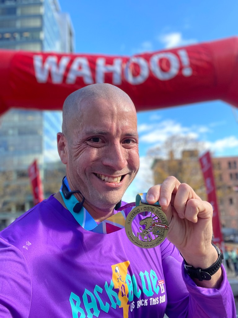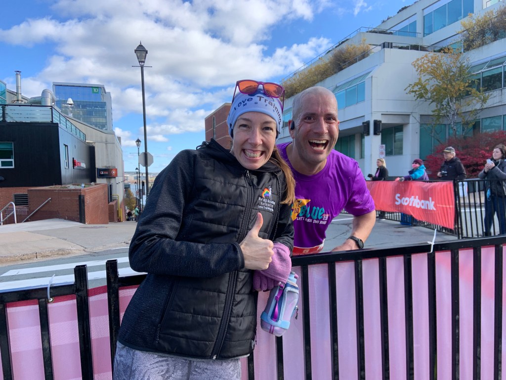 Days after the Blue Nose Marathon, there was another recovery that I was undergoing; an emotional one. While I was beyond grateful that I got to do two other marathons (along with two other races) in 2021 during the pandemic, I think the combination of being coached by an amazing woman for a new personal best on a very challenging course (one I didn’t think that I could do but she did), the race being right in Kjipuktuk, being greeted by Looloo at her first marathon, perfect fall running weather, the big crowd energy of Blue Nose, and just having the feeling of what racing and life was like before the pandemic, all left me with an emotional high. I’ve had a few moments in the last week were I would simply start crying thinking about how wonderful things were during the Blue Nose Marathon, and our gradual return towards this. With Fredericton, I went in with high expectations for myself and felt as if I fell short. Even with earning a Boston Qualifier, I wanted more out of my performance – more out of me – and I think this is why I had a hard time feeling good about how I did. With Blue Nose, albeit having a goal of sub 3:00:00, with 3:02:14 as my new personal best, I was happy/proud of this. I went into this marathon feeling like I had a rematch with a tough opponent that I held a grudge against (the last Blue Nose left me with an injury), but instead, walked away with a mutual admiration and respect, and a deeper appreciation. Sometimes a tough opponent brings out the [personal] best [time] in you, and this year’s Blue Nose did just that.