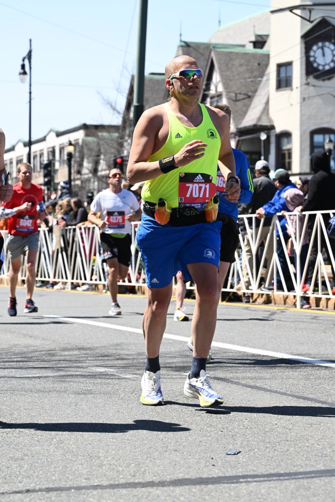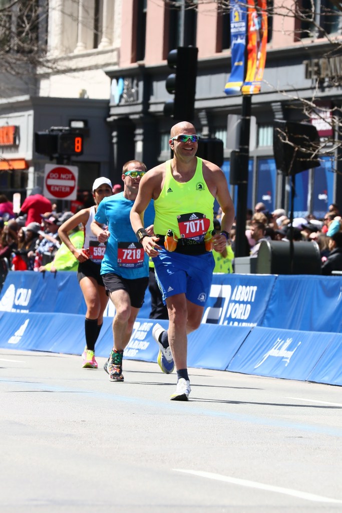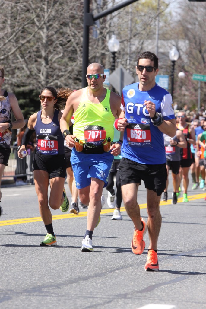 Then came the infamous Heartbreak Hill. While I’ve read how some dread it, it greatly differed from talking to folks I know who actually did it. Those whom I know who did it said that it really isn’t all that super tough. In fact, many simply told me that doing the Blue Nose (with the Halifax hills) was more challenging. During the winter and early-spring, Coach had me incorporate uphill sprints as part of my Wednesday Workouts, performed in all kinds of weather. In sum, Heartbreak Hill for me was demanding, but I’ve had other races (e.g., two Blue Nose Marathons) where the hills felt more difficult to do. I’m not belittling the hill at all. It was quite something, but maybe because I’ve already ran tough marathons and trained with hills, I was stronger in facing this.