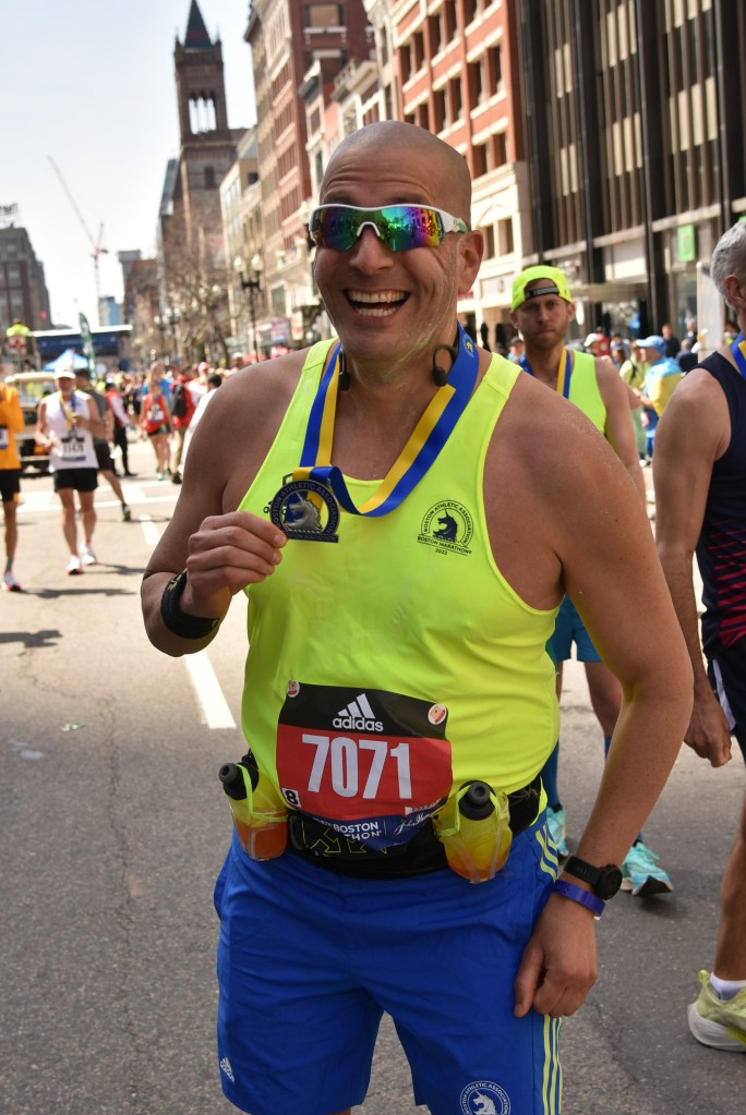 Kerri and I headed to the restaurant. Along the way, we somehow managed to briefly stop in front of a pub, where upon looking inside, we saw many Nova Scotian marathoners and runners. We recognized each other and I went in for a short social chat. We continued on to our restaurant, enjoyed the celebratory dinner, and walked around for a bit. It was recommend to me years ago that walking post-marathon was good for you, especially if you have an upcoming long drive. When I had a sufficient moment, I uploaded a post-race selfie and a short note about finishing the Boston Marathon. One of the nicest and coolest things that I loved about being in downtown Boston after the marathon were strangers simply congratulating each other for doing the race that day. Even those who didn’t do the marathon were congratulating the runners. I loved the atmosphere and gesture of appreciation and support we were all giving each other, just like during the race. We took our time downtown that evening so that things would lighten up a bit to catch an Uber back to the hotel.