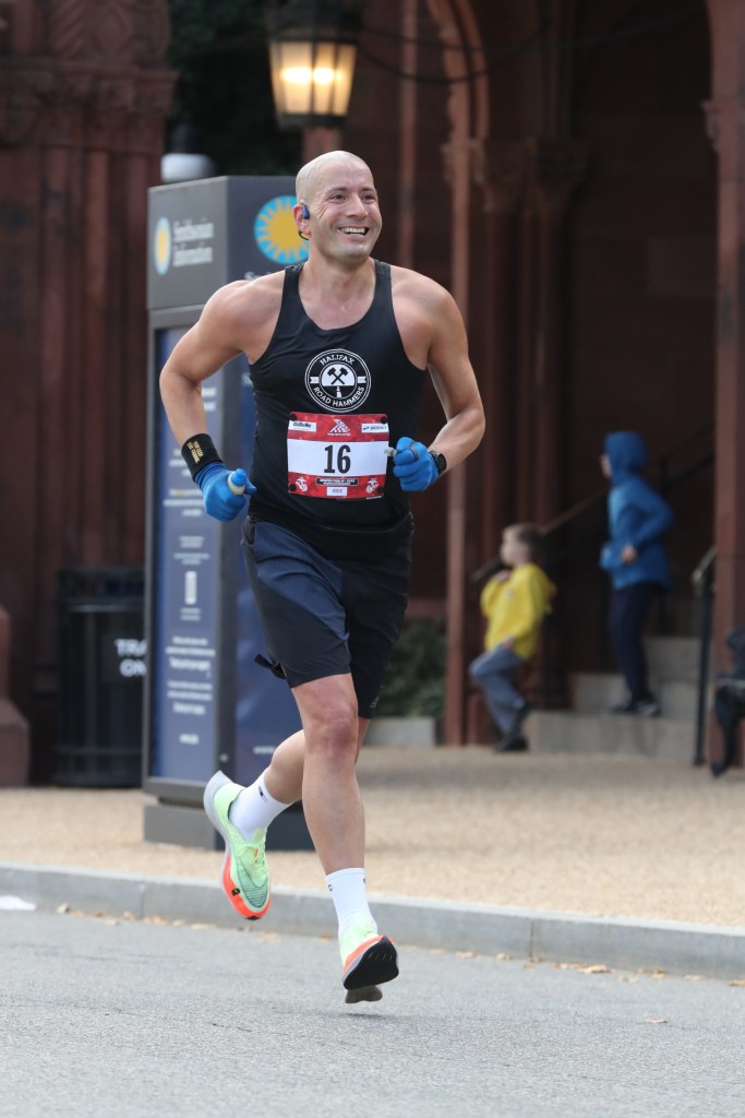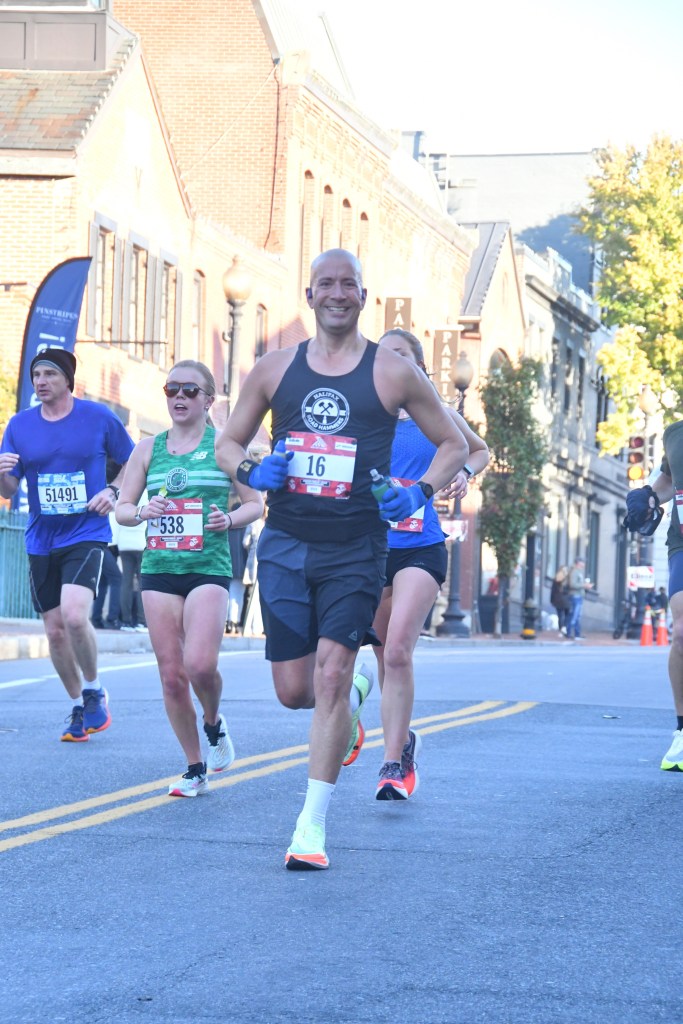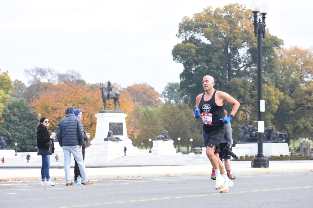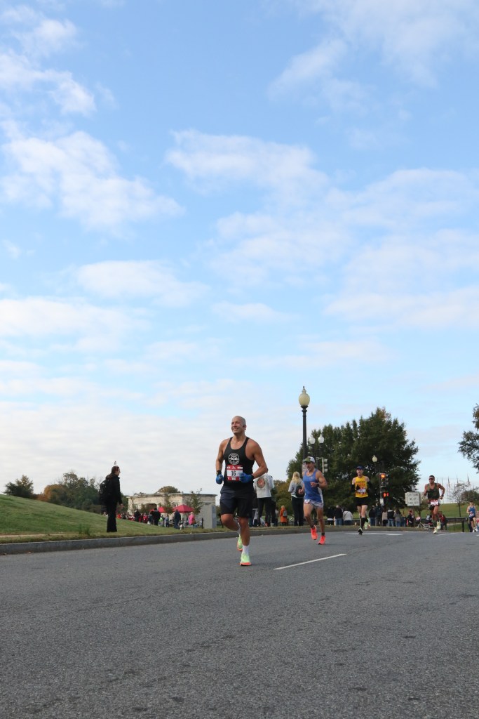 About a minute before we started, like many others, I removed my jacket and placed it on the fence for goodwill. Then we were off. I immediately noticed that, unlike Boston, I felt as if we all had more space. Maybe it was because I wasn’t trying to navigate my way past people and that I was near the start, but it felt like the beginning had ample room. I kept my focus on a 4:10 pace and to consume my gels from my flask every five kilometres. Arlington does have hills, and while not as steep as Blue Nose or Boston, it was more than the Nova Scotia Marathon. But it was very scenic, especially when running down the 124 and we first saw the Potomac River with fog over the islands and on the other side. While I knew that the Marine Corps Marathon was popular and one of the largest in the world, it wasn’t until I turned around at Rock Creek and Potomac Parkway (just before Connecticut Avenue) and headed south that I finally saw what it looked like. It was the first time I witnessed a massive thick sea of marathoners in-person. I was proud to see so many coming along. The Rock Creek Trail reminded me a bit of Victoria Park in Truro – a large presence of trees surrounding all of us. The other scenic piece was further down Rock Creek and Potomac Parkway and seeing the Potomac River (where the fog was pretty much gone by now). I did glance out a bit when I could, but I honestly didn’t really get to “sight see” a whole lot as I was focusing on my run.