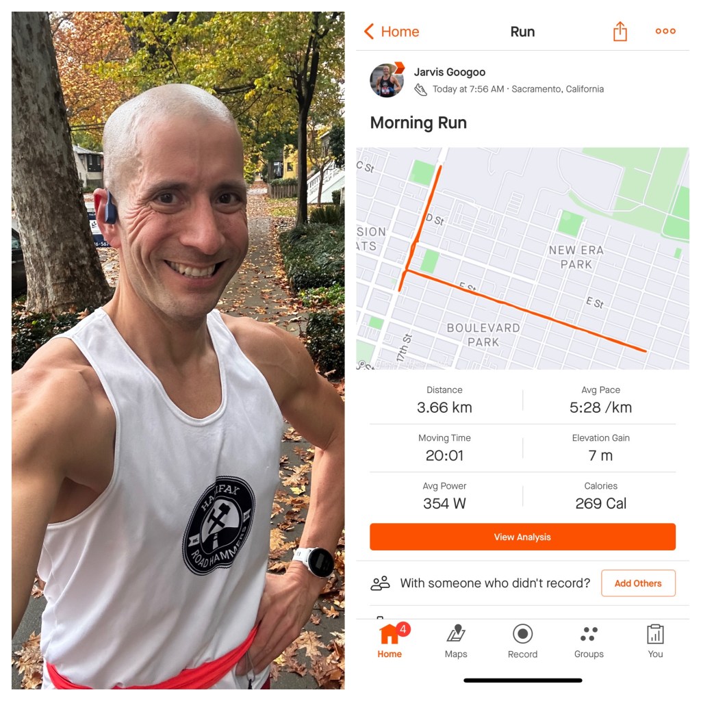 On my birthday and into November 1, health issues continued; a toothache. It was extremely severe and so bad that I promptly went to the dentist. A root canal was scheduled. On the plus side, the new physiotherapy exercises seemed to be helping, because the hamstring was somewhat healing. Not fully recovered, but there was improvement. Throughout the month, the hamstring ranged from 70% to 95% in feeling better. But this wasn’t affecting my running, for which I was grateful for. Without a doubt, this is the weirdest injury to date. Later that month, fellow Road Hammer Ryan MacDonald had a CIM feature in CTV Atlantic, and it was nice to get the short shoutout in it: