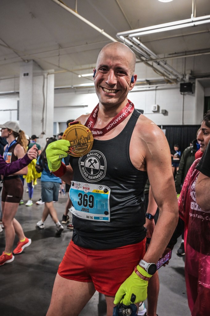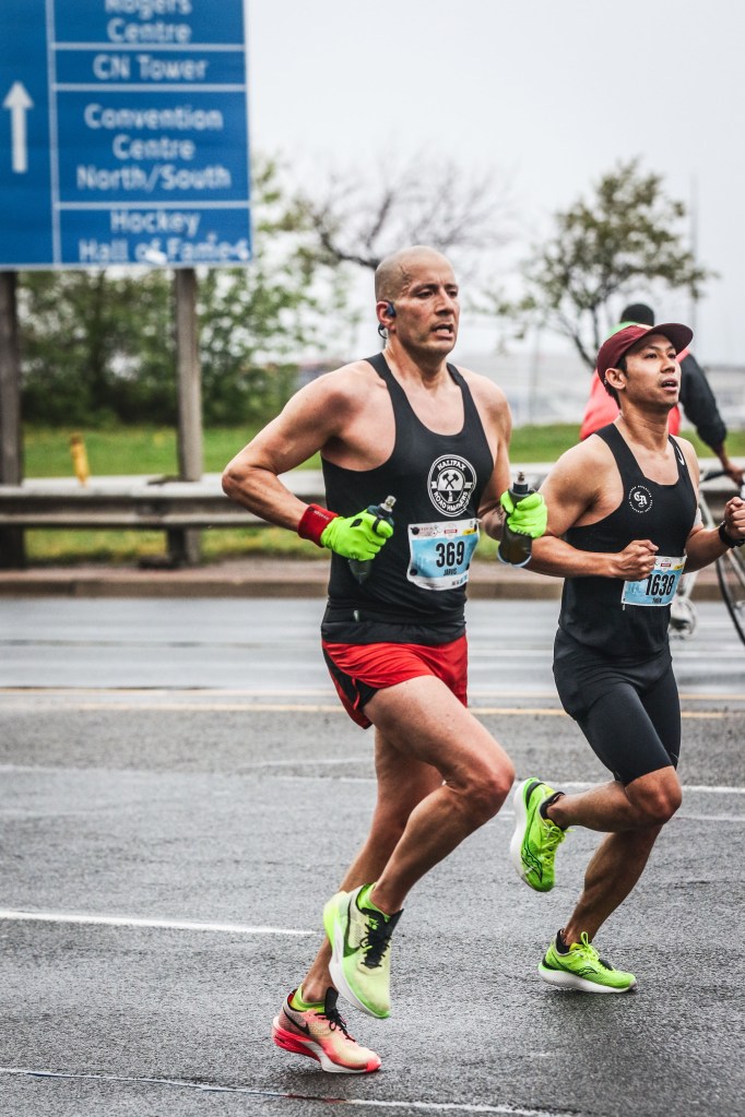 After 32K, this was supposed to be the power push, but it just wasn’t there. Only one split was in the planned range, and every other was off (mainly a bit slower). The final 10K also seemed like a Murphy’s Law, and things just got worse (although nothing like how Fredericton was last year). It felt as if there were fewer course marshals (but that could just be my own perception). Being closer to the water by Martin Goodman Trail, there were massive swarms of midges (at least, I think that’s what they were), and it was so dense that I had to shut my mouth at some parts. Further along and getting onto the bridge near Mimico Creek, the course marshal warned that it was slippery. I pulled back a bit while on it, and had to drive hard to try and regain some of the lost momentum. With about 5K left to do, I got onto the highway of Lake Shore Boulevard (at least the swarms were gone), and just kept pushing towards the end. This wasn’t going to be a powerful finish akin to CIM, but I would be completing my eleventh marathon that day. At 41K, I knew I wasn’t hitting my target time, but at least I still had a shot at a new personal best. It was an uphill finale, and I found it tough, almost on par with MCM. The route to the finish line got very narrow and packed quite quickly, and I spent a few extra seconds trying to navigate around other runners. Nearing the end, I was smiling – it wasn’t the goal that I was aiming for, but it was a personal best, and it was something to celebrate; 2:52:32.
