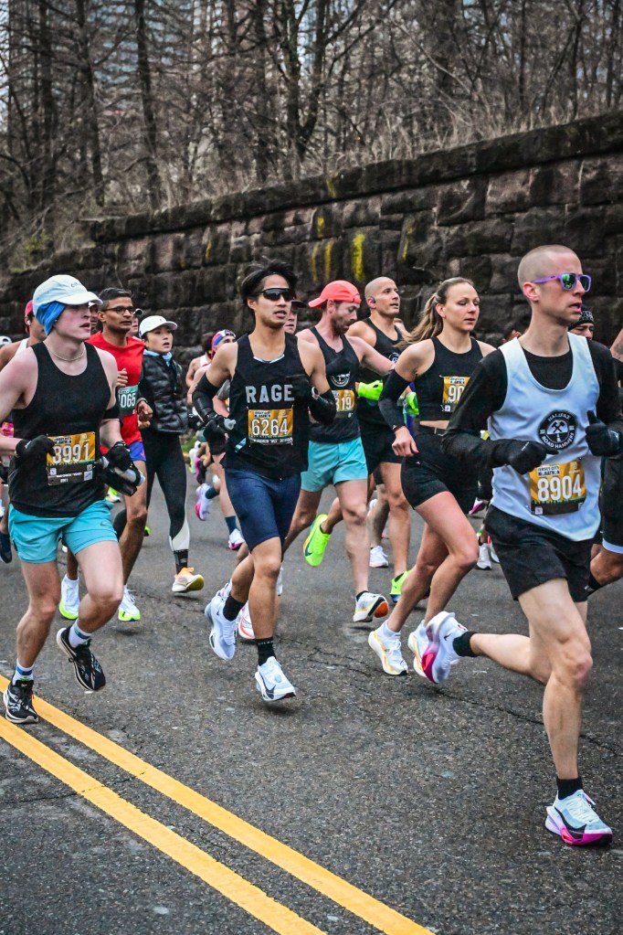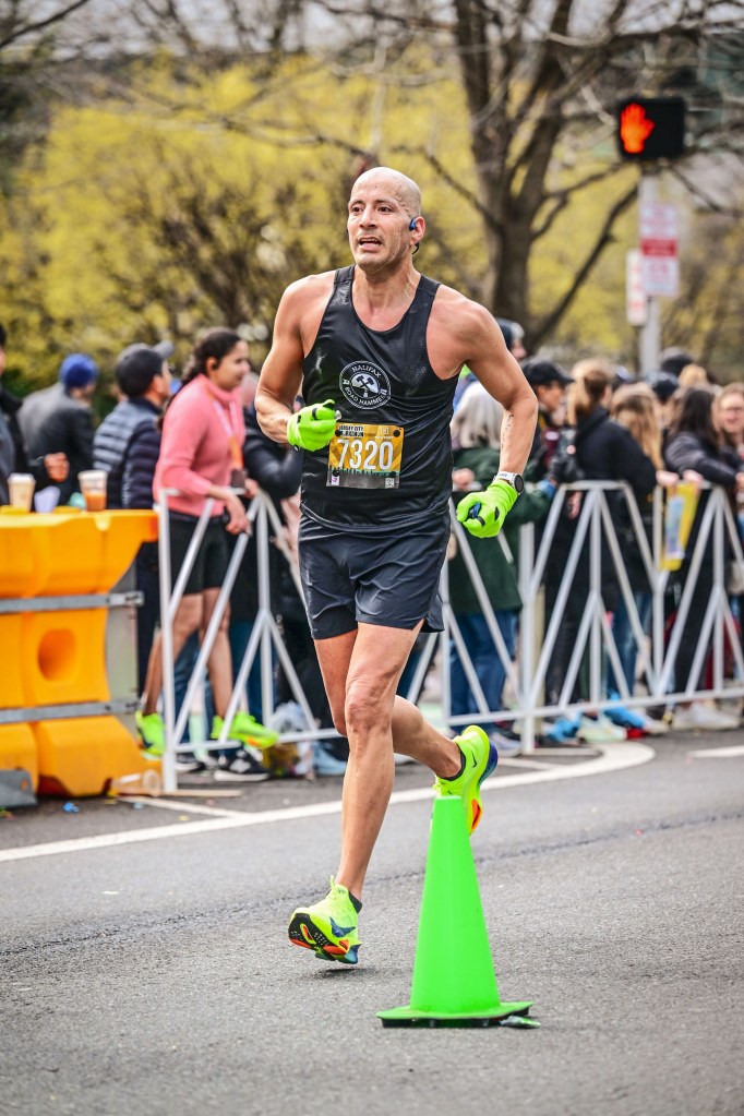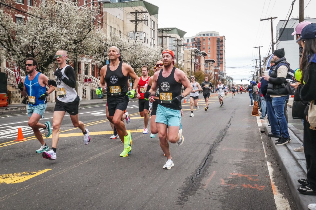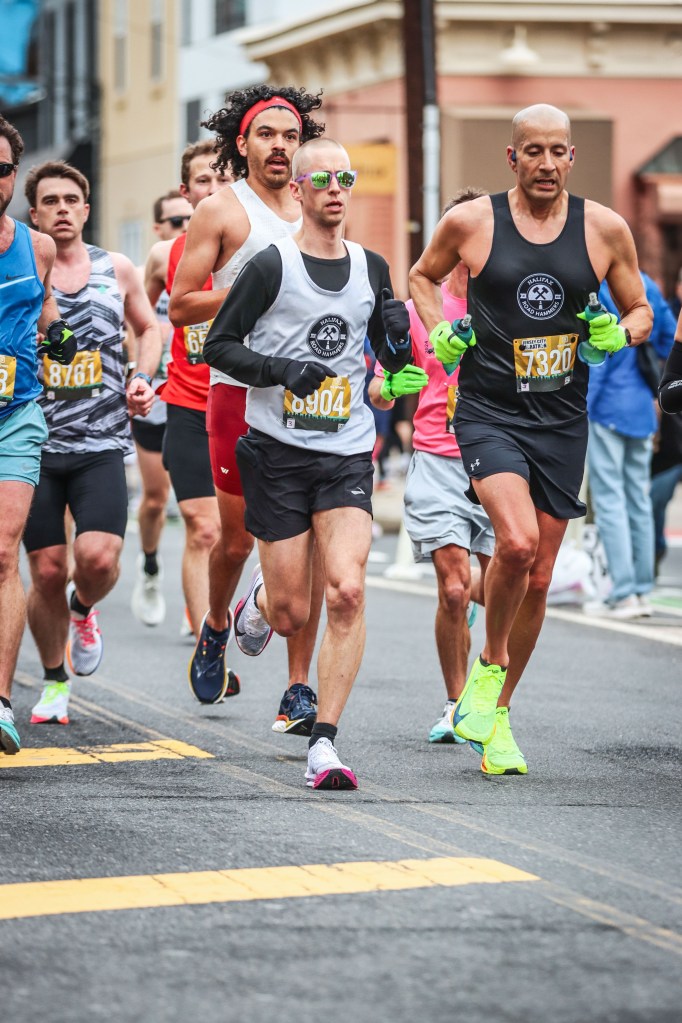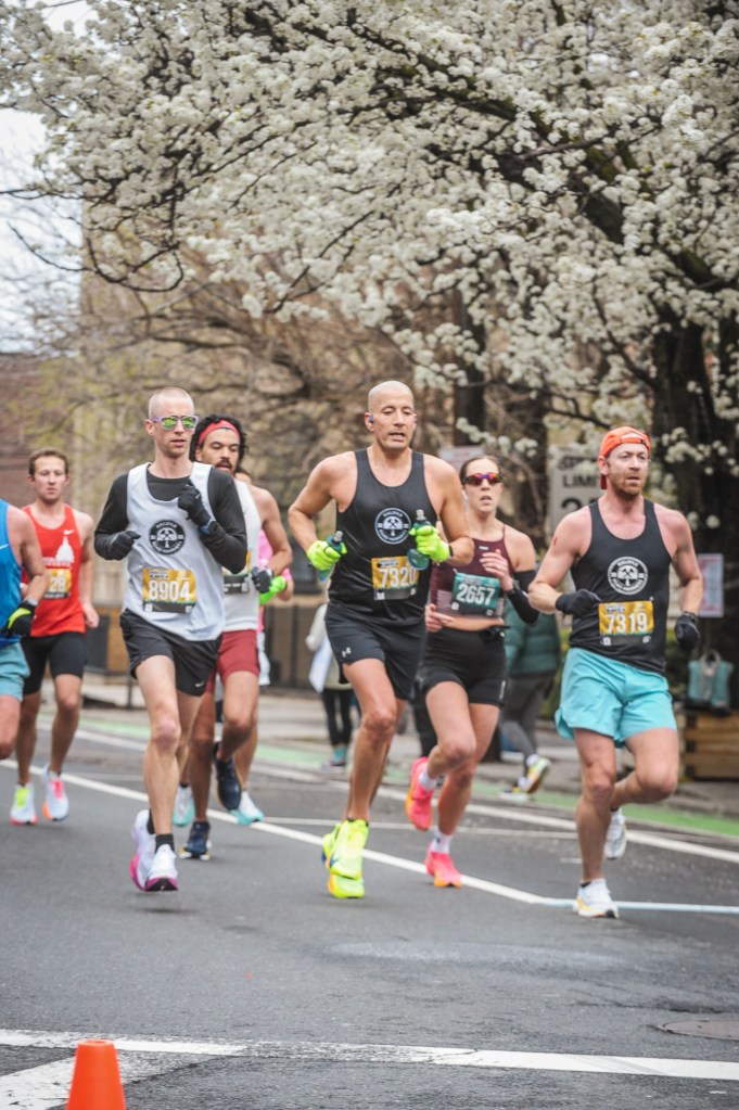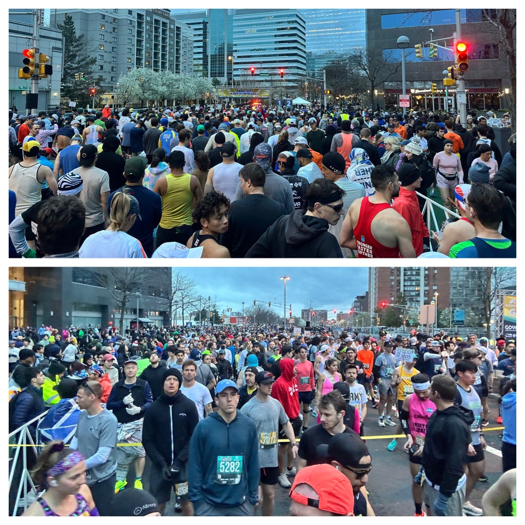 My thirteenth marathon was falling on April 13, and thinking of my grandmother (who saw 13 as a “lucky number”), I viewed this as a positive sign of things to come. I woke up for 2:45 a.m., consumed my fuel, went back to sleep, and had an official marathon wake-up for 4:50 a.m. I felt good and didn’t look at my stats. As we were very close to the start, we agreed to meet up at the hotel lobby. I saw Erin had a trans heart badge on her singlet that read, “Protect Trans Kids.” I acknowledged it and told her that I was proud of what she was doing. Running different paces and or distances, we all wished each other the best before we went to our starting corral area. Lee’s plan for me was to basically stay with Marc and Al, then pick things up should I feel strong enough with a negative split.