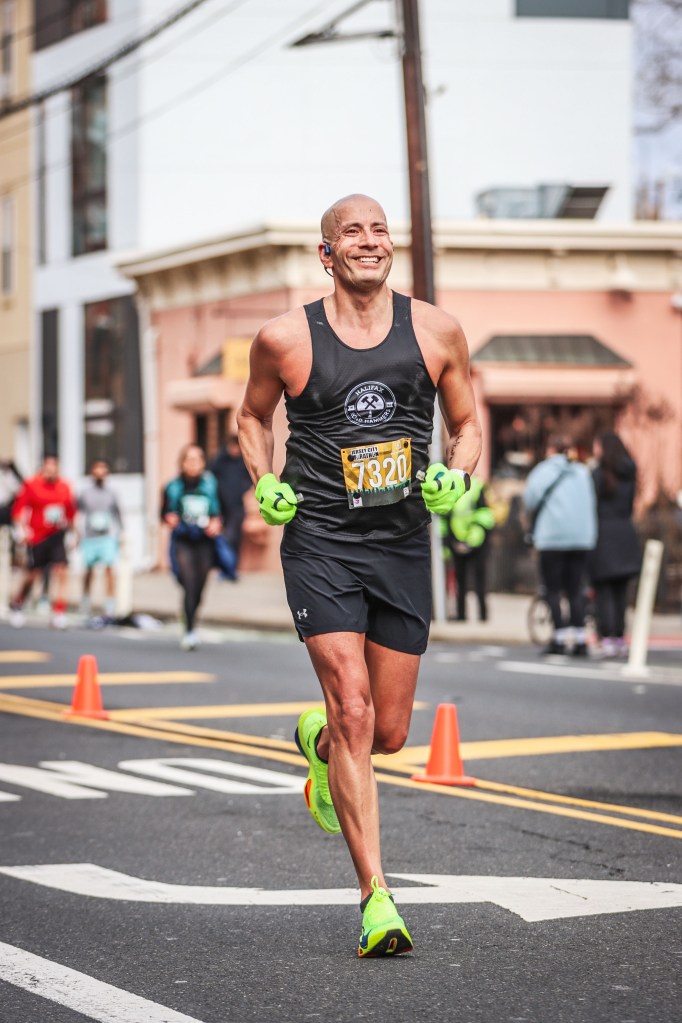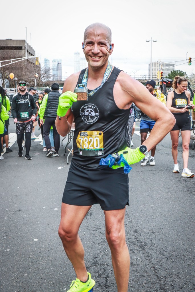 If I was able to pick things up at 25K, I was to do so. But the last two weeks off from running took a toll on me. I didn’t have it in me for this one, and that was okay. I was able to simply run and that was a blessing right there. My hydration flasks were virtually empty around 32K, and I did make use of the water stops. At 35K, it still wasn’t there, and again, running was enough. The good news was that, unlike IMM, I didn’t have a drastic drop in speed and energy, but felt it starting to slowly drain from me. At 39K, I was at a 4:13 pace, and vowed that I would push for the last few kilometres to make it a personal best. I left Marc and Al and managed to get back to a pace near what I was doing for most of the marathon. The rest of Jersey Avenue was a bit more empty than other parts of the race, but the energy and love picked-up once I turned onto Grand Street. I saw the cheering crowds, and while getting to the finish seemed hard, I kept things steady and strong. I wasn’t running on fumes (emphasis on the pun), but knew the time off affected my performance for this one. Nevertheless – and as mentioned – I was grateful for the ability to even run (and to finish it off on a flat surface).