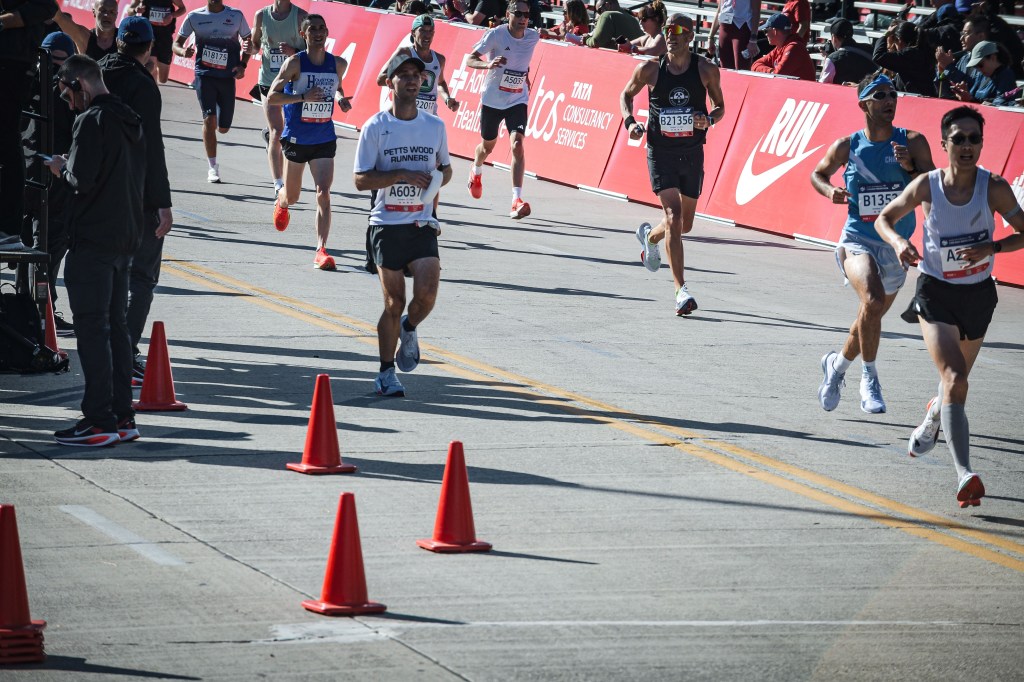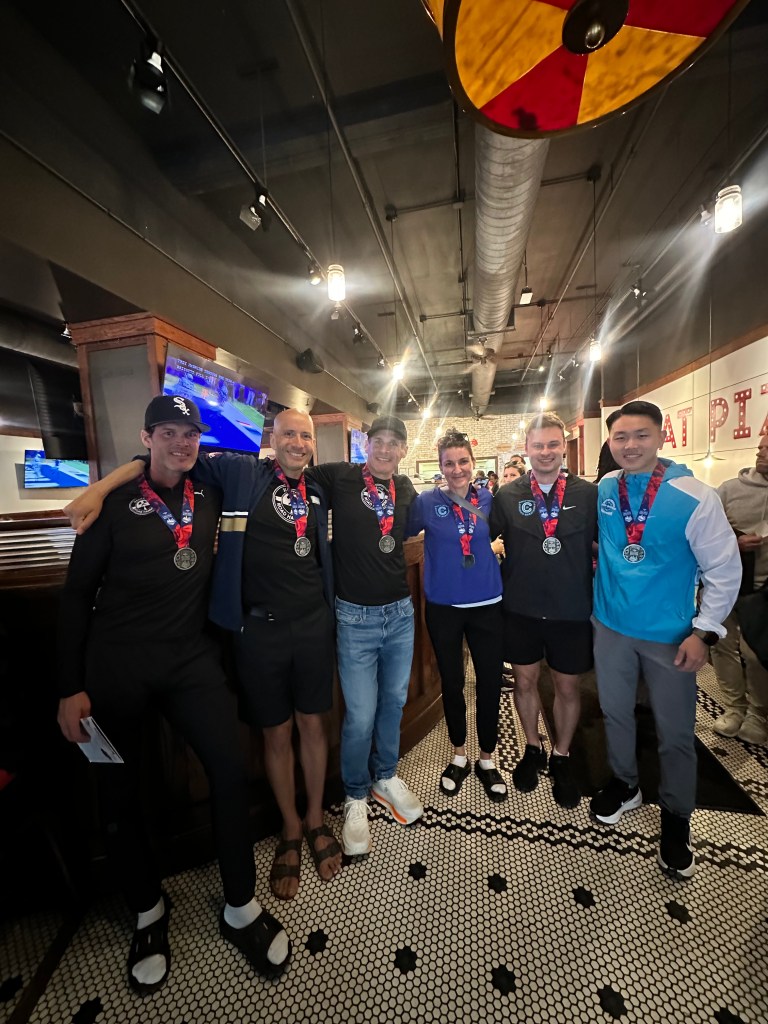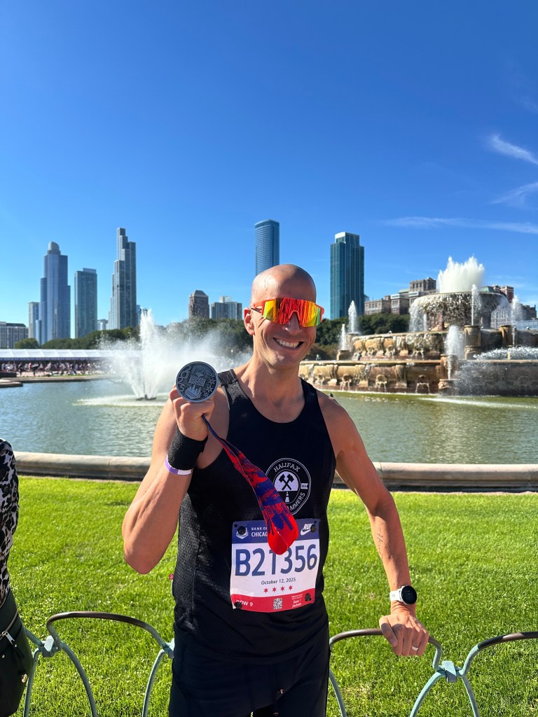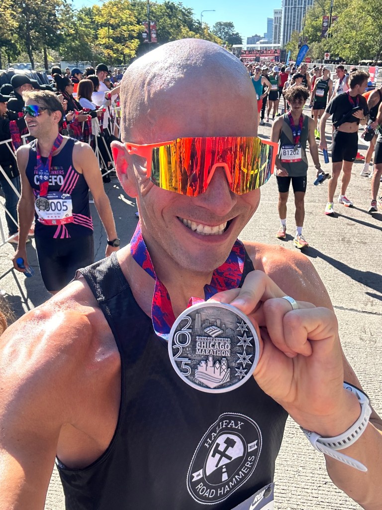 As per Lee’s direction at 25K, I assessed where I was, and it was a good place. Time to pick it up. I slightly increased my pace. I was looking forward to seeing how things would be at 35K and if I could blast it to the finish with the same vigour as I did for the 2023 California International Marathon (CIM). Once I was ready for the last 7K, I did a quick evaluation. My hip flexors were a tiny bit tender, so I couldn’t really dash it à la CIM, but I still had speed. In fact, although I felt stronger with my CIM finish, the final 7K of Chicago was actually faster (go figure). For CIM, Lee said to pick off those ahead of me, and I did the same thing here; spotting a runner in front, catching up, passing, and then repeating. I love surging. My flasks were now empty but I felt alright even with the warm temperatures (embrace the hot summer training I always say). For the first time in years, I did pack a few gels in my new shorts (did I mention how awesome they were?), and took two of them. Not sure if it was the gels or something else, but the last two kilometres on Michigan Avenue became my slowest of the race. No matter; the previous 40K was terrific. While I didn’t hit my specific goal, crossing the finish line, I earned a new PB of 2:46:42, ecstatic for knocking over five minutes off my last marathon, and one hour and 20 minutes since my first one.