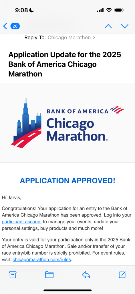 The Chicago Marathon was memorable one. Next up; the Zürich Marathon in Switzerland on April 12, 2026.