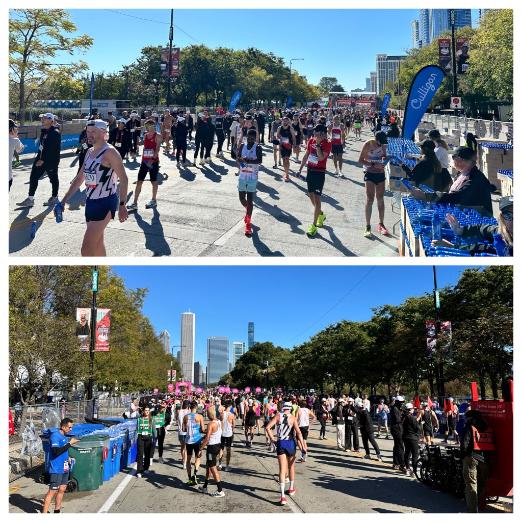 Friday before the race, I took an Uber to the airport with Chris. It was a great opportunity to chat and get to know him and we talked all things running, including a bit about our day jobs. Once in Chicago, we met up with Tony and Sarah and we headed to the Expo. A wonderful surprise was that Tony and I – based upon our best times – were able to go from Corral C to B. I was unbelievably happy. While qualified for Corral A, it was maxed out. Nevertheless, I was over the moon with this upgrade. But even with the euphoric news, a severe issue emerged; exhaustion. My Body Battery was zapped. I got up too early for our flight (but better to play it safe), and with the travels, I found myself completely spent. My physical, mental, and spiritual well-being were drained. I had to ensure Saturday was as relaxing and stressless as possible. After getting some carb food, I went back to my hotel. That night, I managed to get a solid seven hours of sleep, which helped a lot.